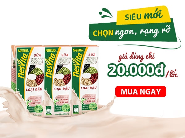 Thưởng thức Sữa NESVITA 5 Loại Đậu MỚI với giá siêu ưu đãi chỉ 20K! Chỉ có trong tháng 7, khuyến mãi độc quyền tại Shopee, bấm mua ngay tại đây.