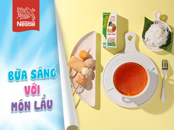 Buổi sáng khi cơ thể chưa hoàn toàn tỉnh táo, bạn nên chọn các món ăn sáng ấm nóng để bảo vệ dạ dày cho con. Vì thế, một phần lẩu thơm lừng của Family Mart với bún, sò điệp, cá viên,… kèm thêm sữa nước Nestlé ít đường 180ml sẽ giúp trẻ thêm tỉnh táo, tập trung để học tốt hơn đấy. Lẩu nóng, vị sữa thơm dịu đánh thức vị giác của trẻ ngay tức khắc. Bên cạnh sữa MILO Ít đường, thực đơn còn có combo lẩu với sữa NESVITA 5 Loại Đậu – sự hòa quyện của đậu nành, đậu đen, đậu xanh, đậu trắng và đậu đỏ đem đến nhiều lợi ích cho sức khỏe.