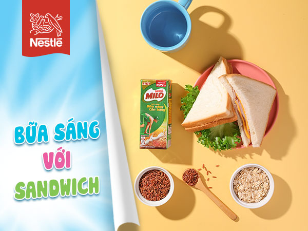 Trẻ nào cũng quá quen thuộc với bánh mì sandwich. Để thêm hấp dẫn, thực đơn ăn sáng trên Now.vn đã cho ra nhiều biến tấu khác như sandwich cá ngừ mayo, sandwich bò BBQ & trứng mayo, sandwich gà teriyaki & thịt nguội đa dạng mùi vị, rất thơm ngon. Mỗi combo sẽ có thêm Thức uống lúa mạch MILO ít đường giàu dinh dưỡng cho trẻ khỏe mạnh hơn, đủ năng lượng bền bỉ để trẻ khám phá thế giới xung quanh.