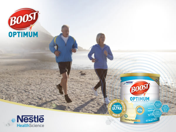 Nhằm mang đến một giải pháp dinh dưỡng đủ đầy, cân đối cho người lớn tuổi, Nestlé đã giới thiệu sản phẩm BOOST Optimum - thực phẩm bổ sung với công thức dinh dưỡng chuyên biệt cho người lớn tuổi: thành phần gồm 50% đạm Whey, chứa các vi sinh vật có lợi Prebiotic và Probiotic, giàu Vitamin E, B6, B12 giúp cải thiện sức đề kháng.