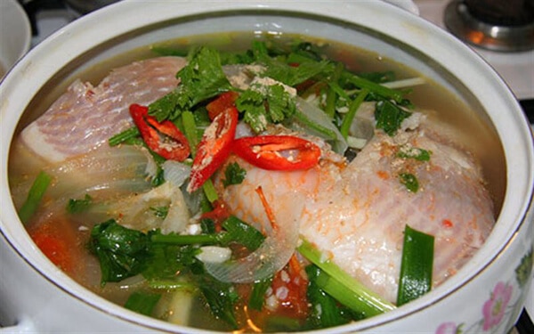 - Nước sôi thả cá vào, nấu tiếp và vớt bọt. Nêm nếm gia vị vừa ăn.
